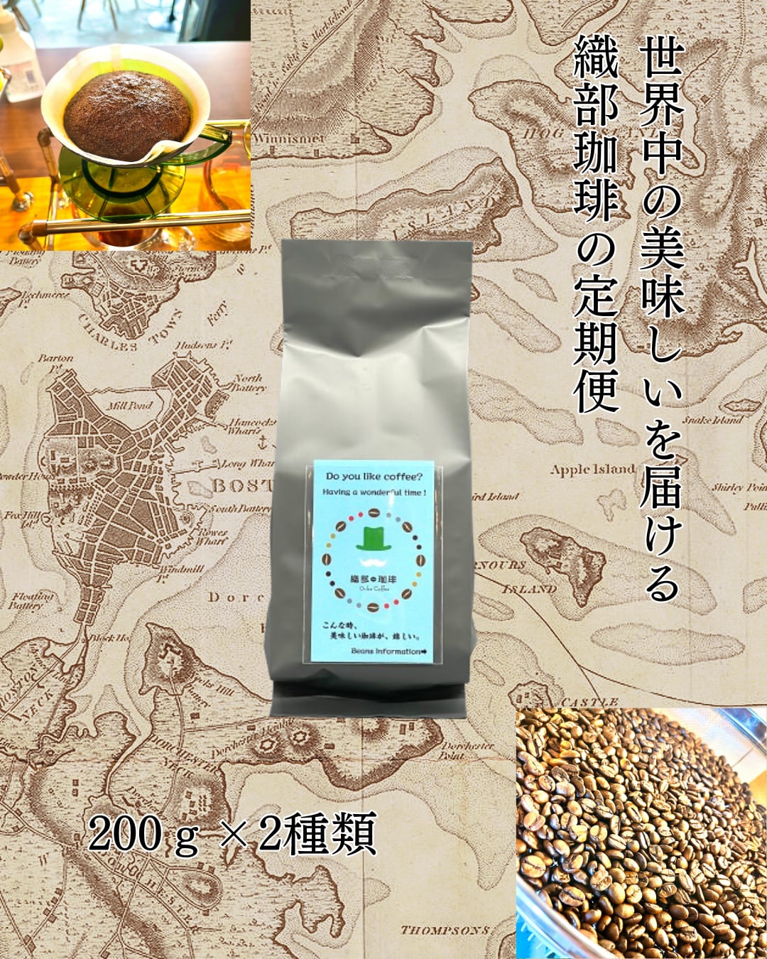 ★毎月送料無料★織部珈琲の定期便【200g×2種×6ヵ月】